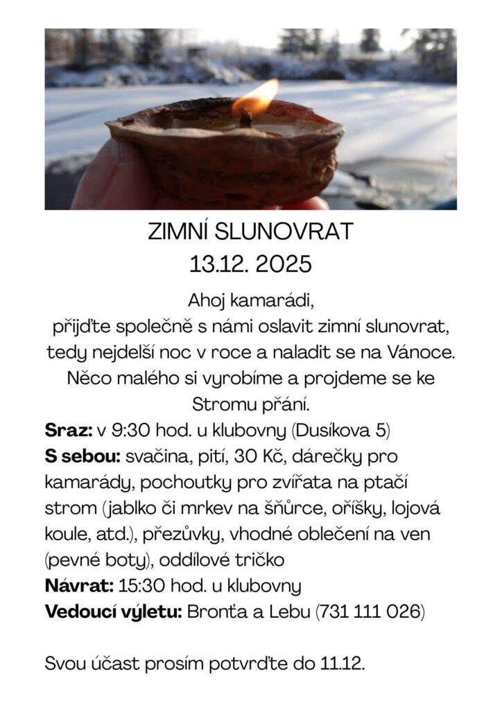 Sraz: v 9:30 hod. u klubovny (Dusíkova 5)